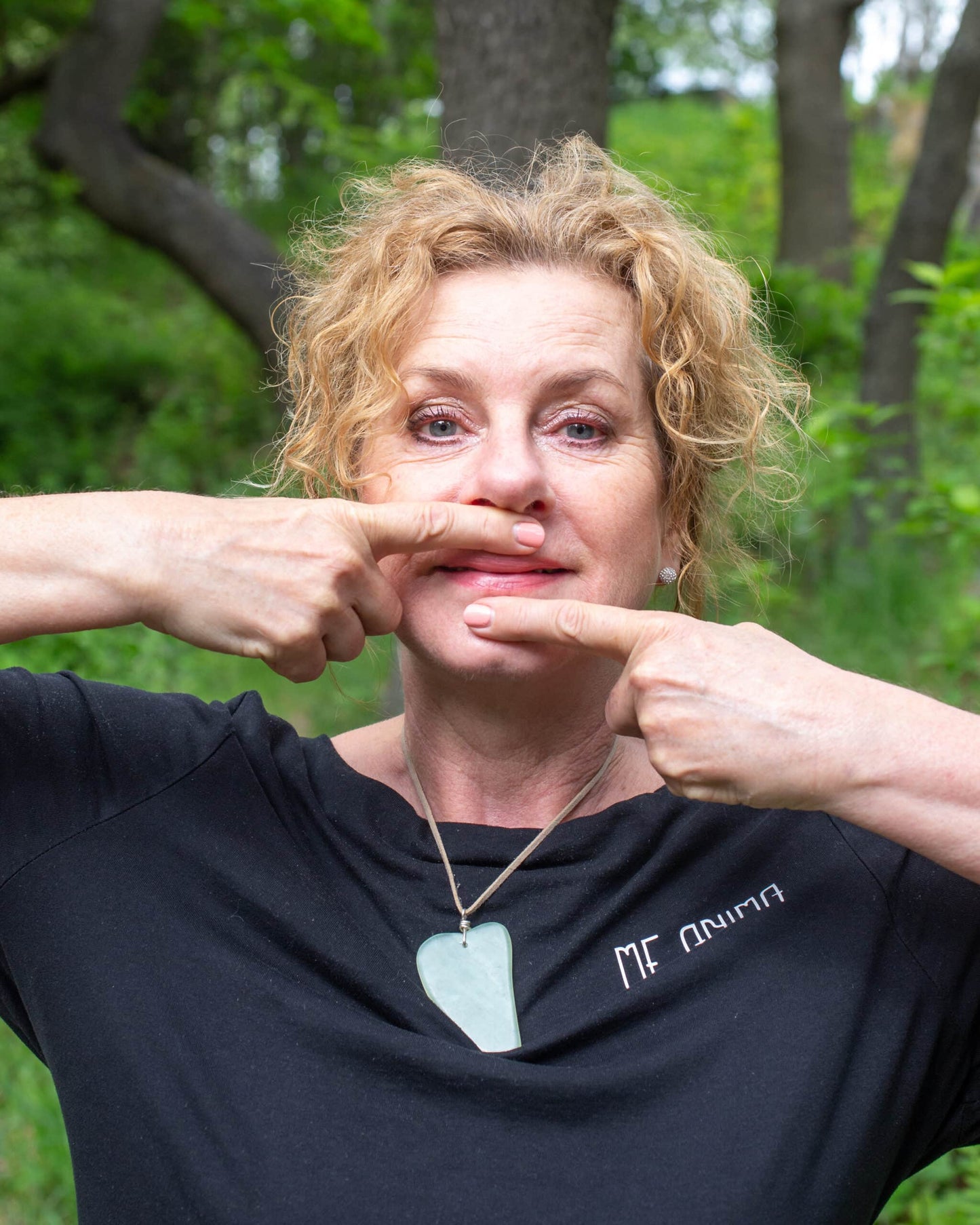 Finish with a wide, upward smile to activate the muscles around the mouth and give your face a lift.